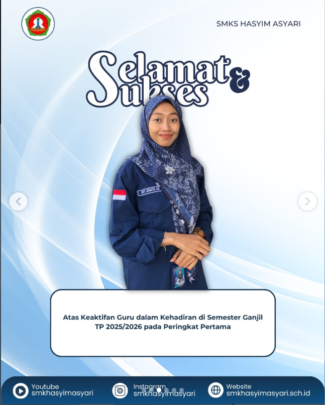 SMKS Hasyim Asy’ari kembali menorehkan kabar membanggakan. Salah satu tenaga pendidik terbaiknya berhasil meraih peringkat pertama dalam keaktifan kehadiran guru pada Semester Ganjil Tahun Pelajaran 2025/2026. Prestasi ini menjadi bukti nyata komitmen dan kedisiplinan guru dalam menjalankan tugas serta tanggung jawabnya sebagai pendidik. Penghargaan tersebut diberikan sebagai bentuk apresiasi sekolah terhadap guru yang menunjukkan konsistensi […]