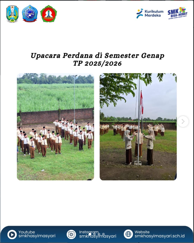 SMKS Hasyim Asyari melaksanakan upacara bendera perdana pada Semester Genap Tahun Pelajaran 2025/2026 dengan tertib dan khidmat. Kegiatan ini diikuti oleh seluruh peserta didik, dewan guru, serta tenaga kependidikan sebagai bentuk penanaman nilai kedisiplinan, tanggung jawab, dan semangat kebangsaan. Upacara dilaksanakan di lapangan sekolah pada pagi hari dengan susunan acara berjalan lancar. Petugas upacara yang […]