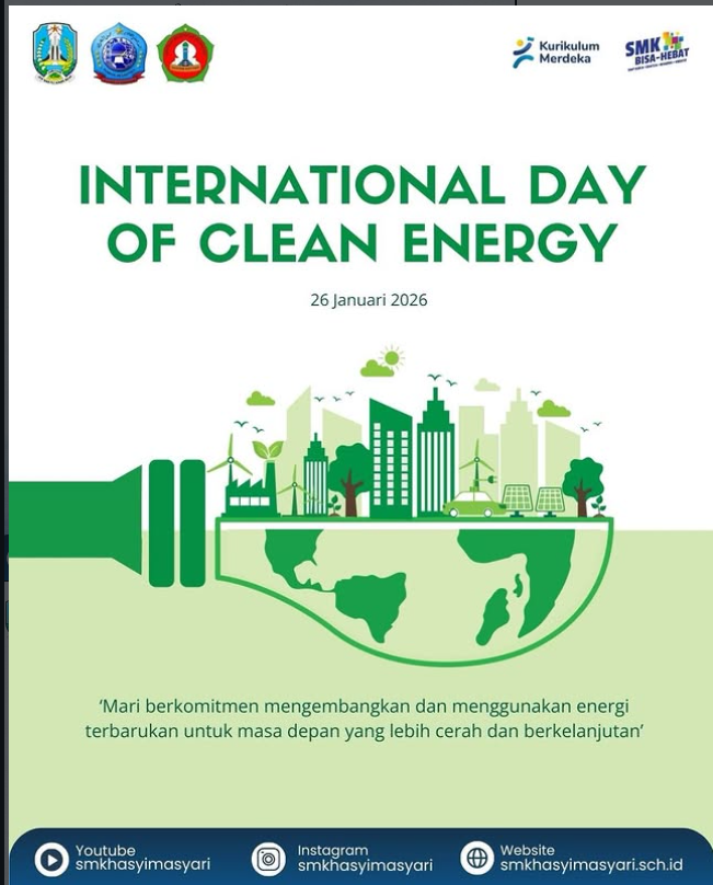Dalam rangka memperingati International Day of Clean Energy yang jatuh pada 26 Januari 2026, SMK Hasyim Asy’ari turut menyuarakan pentingnya komitmen bersama dalam pengembangan dan pemanfaatan energi bersih serta ramah lingkungan. Peringatan ini menjadi momentum untuk meningkatkan kesadaran seluruh warga sekolah terhadap peran energi terbarukan dalam menjaga keberlanjutan bumi. Melalui peringatan ini, sekolah mengajak siswa, […]