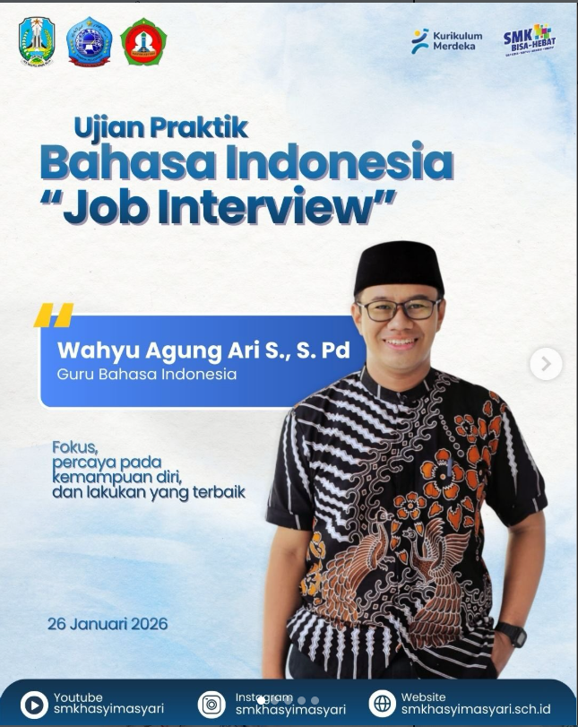 Melatih Kesiapan Siswa Menghadapi Dunia Kerja SMK Hasyim Asy’ari melaksanakan Ujian Praktik Bahasa Indonesia dengan tema “Job Interview” pada 26 Januari 2026. Kegiatan ini merupakan bagian dari evaluasi pembelajaran yang bertujuan untuk mengukur kemampuan komunikasi lisan siswa dalam konteks dunia kerja. Ujian praktik ini dibimbing oleh Ustadz Wahyu Agung Ari S., S.Pd, selaku Guru Bahasa […]