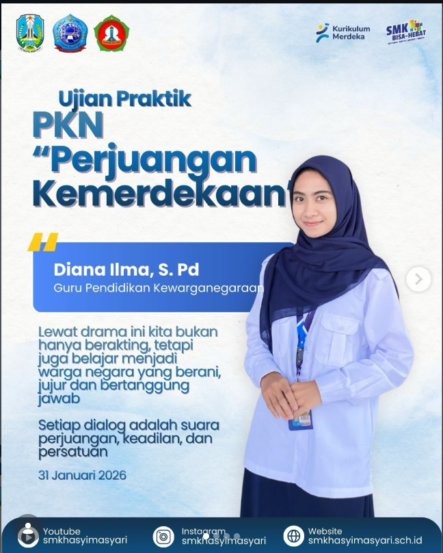 Dalam rangka melaksanakan Ujian Praktik mata pelajaran Pendidikan Kewarganegaraan (PKN), SMK Hasyim Asy’ari menyelenggarakan kegiatan bertema “Perjuangan Kemerdekaan” pada 31 Januari 2026. Kegiatan ini dibimbing langsung oleh Diana Ilma, S.Pd, selaku Guru Pendidikan Kewarganegaraan. Ujian praktik ini dikemas dalam bentuk drama dan dialog perjuangan, yang bertujuan tidak hanya untuk menilai kemampuan akademik peserta didik, tetapi […]